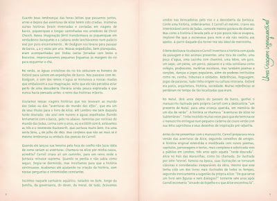 Uma outra questão que é particularmente intrigante em se tratando de Alice é: que edições de Alice a pessoa já tem e o que espera dessa primeira ou dessa nova edição? Quer uma edição com conteúdo de referência e pesquisa e uma tradução de maior relevância acadêmica ou quer uma edição de colecionador artisticamente mais ousada e desafiadora? As vezes essas características se combinam, outras vezes não. Para quem é o livro? Qual a relação que o leitor tem com arte e literatura? É criança? É adulto? Que critérios são mais relevantes para você?