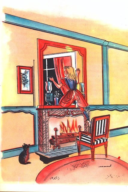 Essa curiosa adaptação do texto de Alice através do Espelho mereceria uma análise mais cuidadosa com suas ousadias e equívocos. Tweedledee e Tweedledum são Tocati e Tocatum, Humpty Dumpty vira o “gordinho” e o poema do Jabberwocky que Monteiro Lobato não havia se arriscado a adaptar para o português, recebe aqui o nome de Algaravia (que significa linguagem pouco compreendida), monstro fabuloso que passa a conviver com o lobisomem e o bicho papão entre árvores de mandacaru.